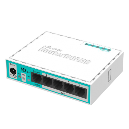 روتر سیمی hEX lite نسل جدید و ارتقاء یافته ی روتر RB750 کمپانی میکروتیک می باشد که چندی پیش از خط تولید این کمپانی خارج شده است . این روتر سیمی از لحاظ سخت افزاری شامل 5 عدد پورت اترنت با پشتیبانی از سرعت 10 و 100 مگابیت بر ثانیه , پردازنده 1 هسته ایی ممدل QCA9533 معماری MIPSBE با سرعت 850 مگاهرتز برا هر هسته , مقدار ذخیره گاه حافظه 64 مگابایت و 16 مگابایت فضای ذخیره سازی storage با استاندرد FLASHمیباشد . همچنین قابل ذکر است شما می توانید به راحتی از طریق قابلیت PoE IN در (پورت 1) نسبت به روشن نمودن دستگاه از طریق سوئیچ PoE ها و یا سایر محصولات با قابلیت PoE OUT با استاندارد و ولتاژ مشابه اقدام نمائید .